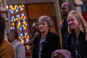 Turning to the cathedral itself, Bishop Selemela emphasized its enduring role at the heart of the city. Gesturing to its stained-glass windows, he explained that in earlier times “churches used to be a place of gathering where people could use the symbolism in the church to learn about the faith.”