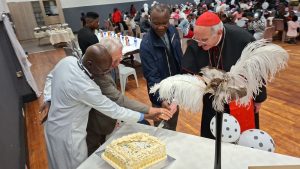 Reflecting on the meaning of the Jubilee, Fr. Mulenga M.Afr, who leads the Missionaries of Africa in Southern Africa, said the day was both a celebration and a renewal of their missionary calling. He explained that they first came to South Africa in 1972 “to accompany the Malawians who were working in the mines” and that, fifty years later, “it is very encouraging” to see the community gather with the Cardinal, bishops, and faithful to give thanks.