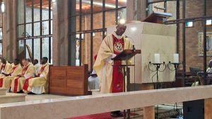 The Mass was presided over by Cardinal Stephen Brislin, Archbishop of Johannesburg, and concelebrated by Fr. Christian Mulenga M.Afr, Provincial Superior of the Missionaries of Africa, alongside diocesan clergy, religious sisters, and seminarians. Among those present were Bishop Jan de Groef M.Afr of Bethlehem diocese and Fr Hugh O’Connor, Secretary General of the Southern African Catholic Bishops’ Conference (SACBC).